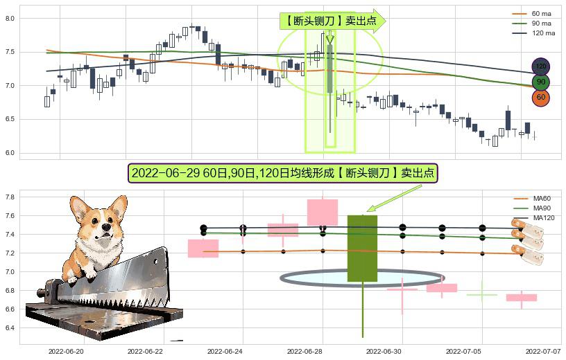 形态多维评估: ⚀ 2022-06-29日显现 60日-90日-120日均线 【断头铡刀】卖出点 看空信号,后市看跌,卖出