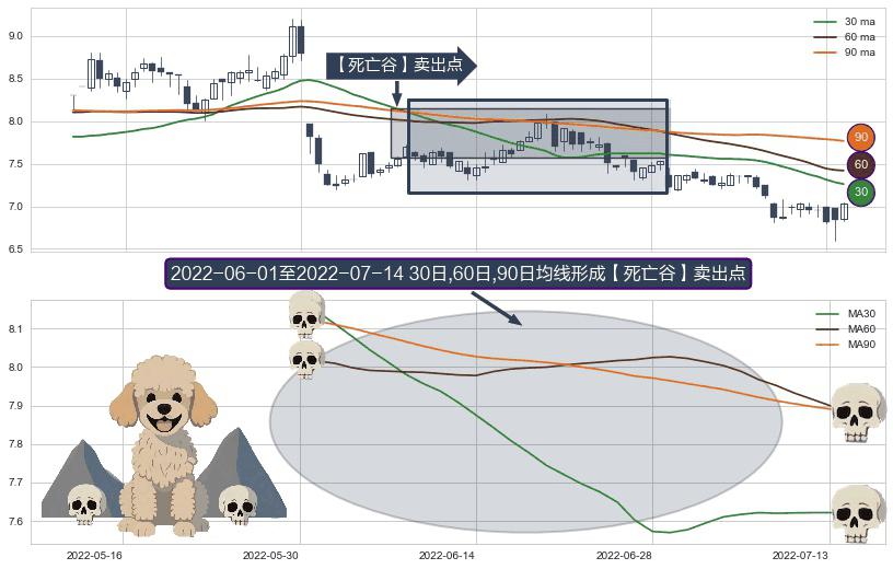 形态多维评估: ⚀ 2022-06-02-日至2022-07-14-日显现 30日-60日-90日均线 【死亡谷】卖出点 看空信号,后市看跌,卖出