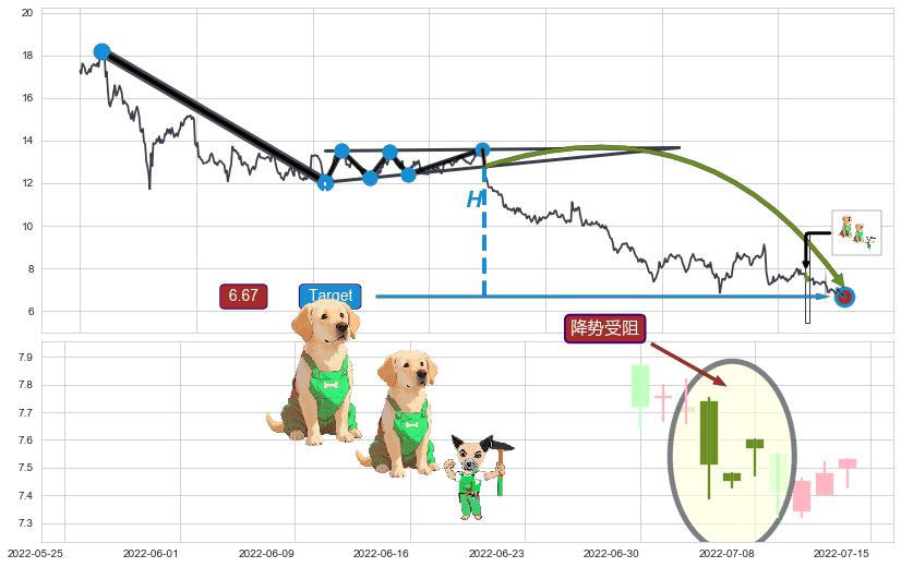 ♘ 阻力价格位11.75,可信任强度97.09%,距离最后交易2022-08-12形成的收盘价格7.03相差 +67.15%