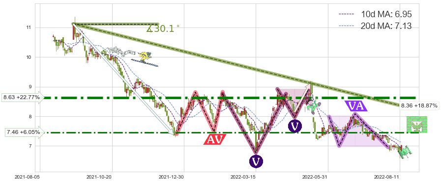 ➢ 2022-08-10到达第❸价格目标位置6.82