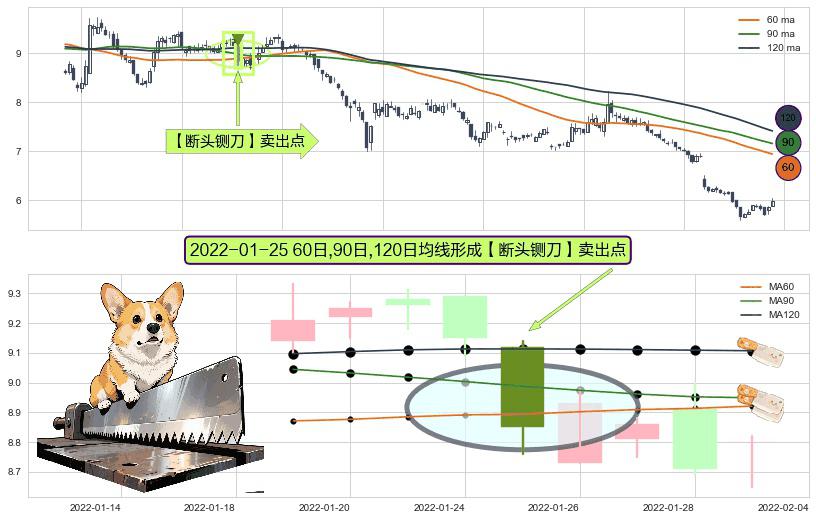 形态多维评估: ⚀ 2022-01-25日显现 60日-90日-120日均线 【断头铡刀】卖出点 看空信号,后市看跌,卖出