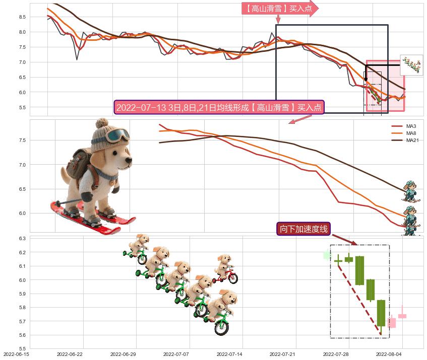 | 3 🅚:双针探底 ➕ 🎢:【高山滑雪】买入点均线组合买入点信号形成后,猜想后续下行结束,持续反弹上涨(均值回复) ☞ 看多信号 ⇥ 【均线】交织【🅚线】⇥ 综合量化分数: 54 | > |