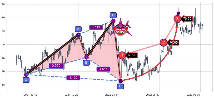 ➣ 已完成【鲨鱼】形态起点X: 2021-09-23, 终点D: 2022-03-15, 共117交易日