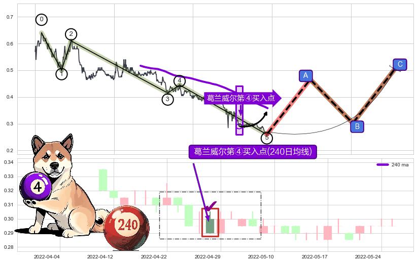 | 2 🅚:【高山滑雪】买入点 ➕ 🌊:波浪理论猜想下跌浪5已形成,猜想后续形成abc反弹上涨(均值回复) ☞ 看多信号 ⇥ 【均线】交织【图形】⇥ 综合量化分数: 52 | > |