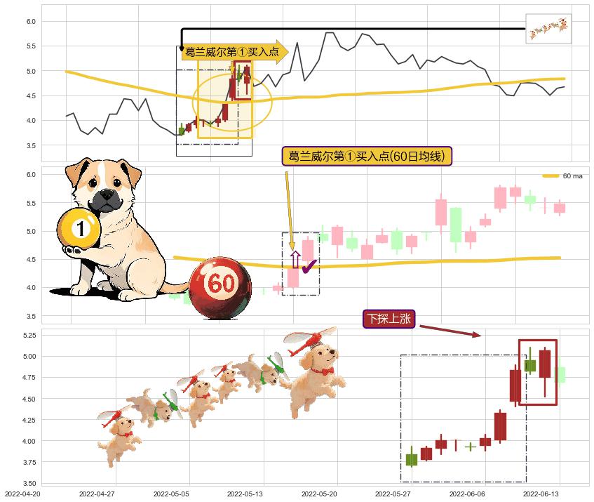 ➢ 收盘价(2022-01-05: 5.77 )→回踩→第一根k线高点(2021-12-30: 6.38 )