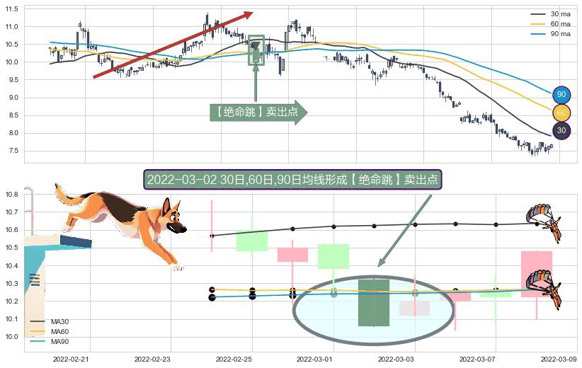 形态多维评估: ⚀ 2022-03-02日显现 30日-60日-90日均线 【绝命跳】卖出点 看空信号,后市看跌,卖出