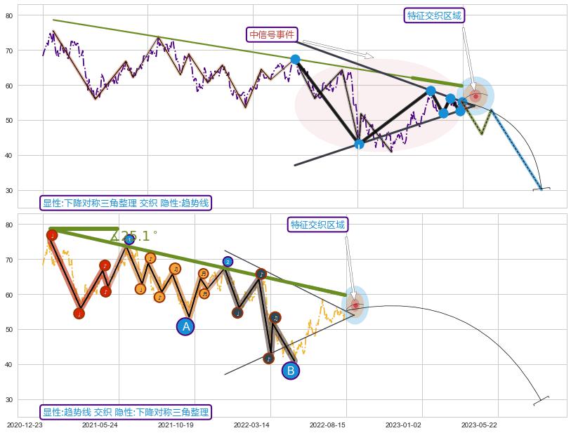 ➣ 【未确认突破,预测即将形成突破】下降【对称】三角形整理起点:2021-12-14, 预测突破点:2022-08-12,形态共160交易日