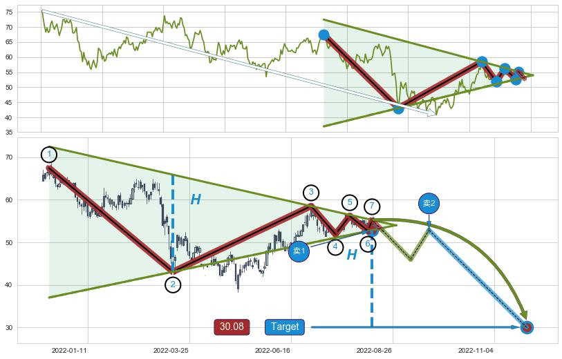 ➣ 【仅预测突破】最后价格:55.25与预测突破价格:52.85→【空间临近】后续最小【整理】第一目标价格→(2022-11-28: 30.08 )