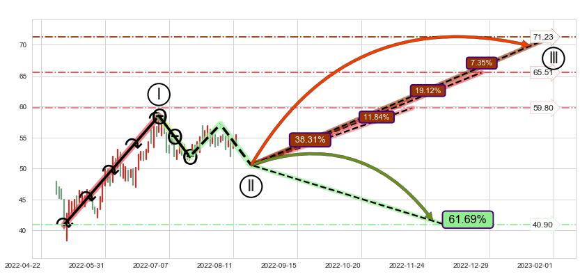 ➢ AI预测: 假定反转启动后, 第❷目标位置(2022-09-26, 54.03)