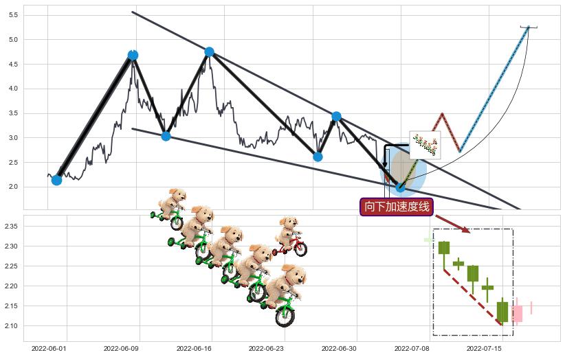 | 2 🅚:【高山滑雪】买入点 ➕ 📐:降楔型猜想突破点临近,临近关键阻力位,预期拉升突破上涨 ☞ 看多信号 ⇥ 【均线】交织【图形】⇥ 综合量化分数: 52 | > |