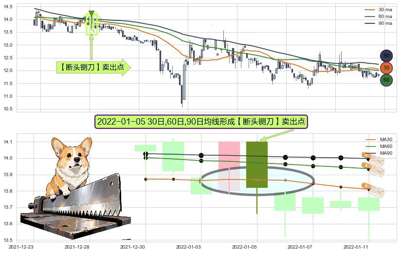 形态多维评估: ⚀ 2022-01-05日显现 30日-60日-90日均线 【断头铡刀】卖出点 看空信号,后市看跌,卖出