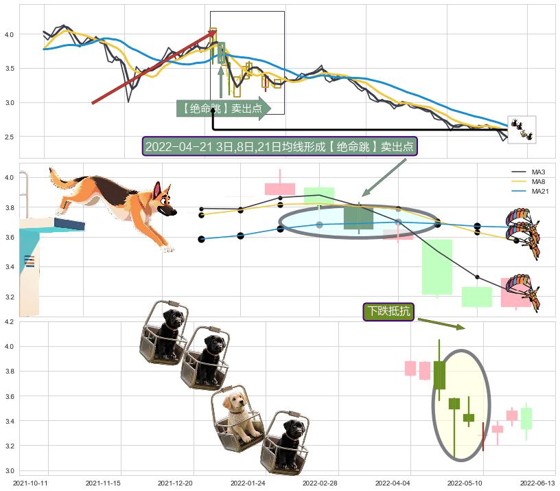 ♘ 阻力价格位3.446,可信任强度96.99%,距离最后交易2022-08-12形成的收盘价格2.690相差 +28.10%