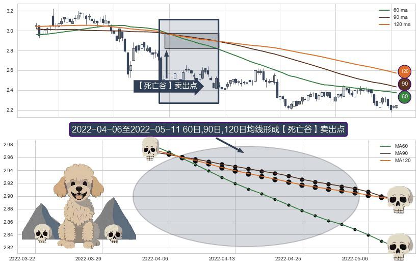 形态多维评估: ⚀ 2022-04-07-日至2022-05-11-日显现 60日-90日-120日均线 【死亡谷】卖出点 看空信号,后市看跌,卖出