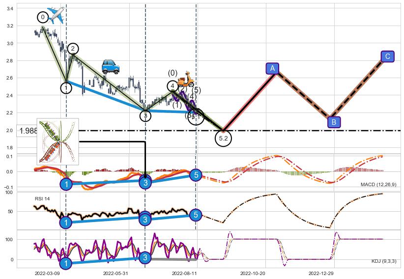➢ 5.1: 预测当前第5浪位置(2022-08-10, 2.200),仍然有下跌空间