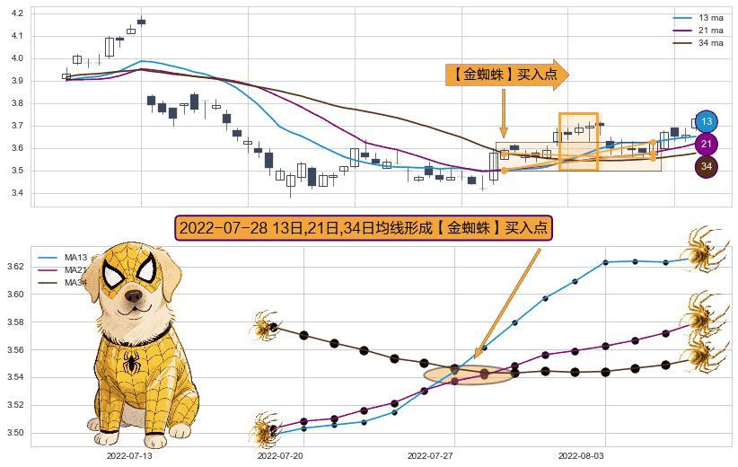 ⚀ 2022-07-28日显现 13日-21日-34日均线 【金蜘蛛】买入点 看多信号,后市看涨,买入