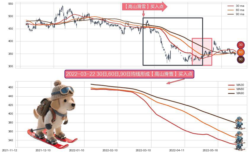 形态多维评估: ⚀ 2022-01-14日-2022-05-31日显现 30日-60日-90日均线 【高山滑雪】买入点 看多信号,后市看涨,买入