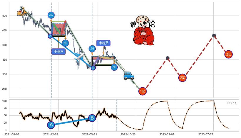 ➣ 【未完成】缠论 起点:2021-08-06, 完成第1中枢A,完成第2中枢B,到达2022-08-12