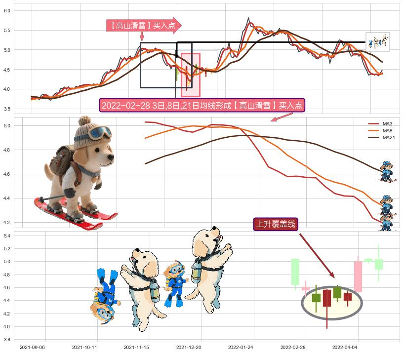 | 2 🅚:早晨之星(黎明之星) ➕ 🎢:【高山滑雪】买入点均线组合买入点信号形成后,猜想后续下行结束,持续反弹上涨(均值回复) ☞ 看多信号 ⇥ 【均线】交织【🅚线】⇥ 综合量化分数: 51 | > |