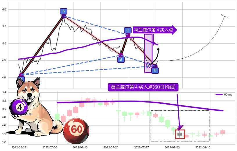 ➣ D点拟合预测价格3.859,距离最后交易收盘价格4.48相差 -13.87%