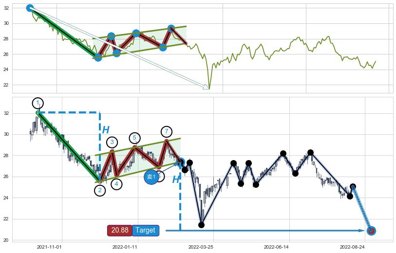 ➣ AI预测: 假定反转启动后, 第❶目标位置(2023-03-14, 26.96)