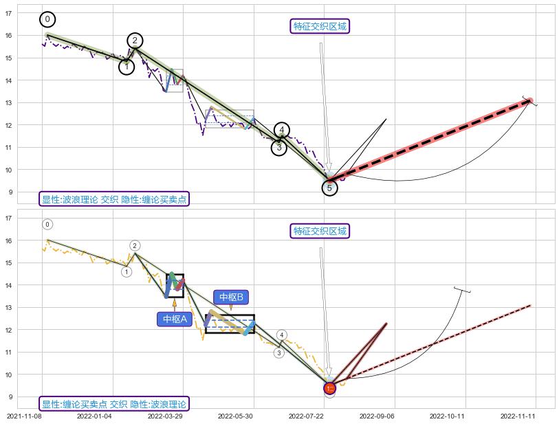 ➣ 【中枢B】:2022-04-28-2022-05-30,中枢由4笔构成,共18交易日, ZG=12.30, ZD=12.20