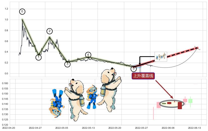 ➢ 低点影线(2022-05-17: 0.130000 )→回踩→第二根k线低点(2022-05-16: 0.131000 )