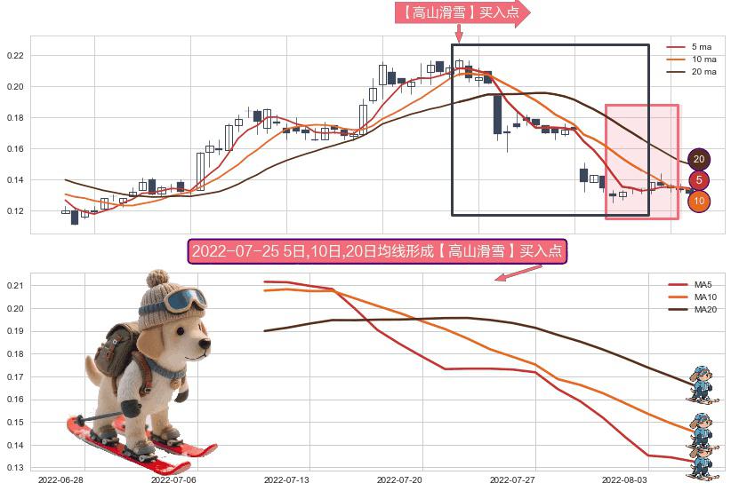 形态多维评估: ⚀ 2022-07-11日-2022-08-05日显现 5日-10日-20日均线 【高山滑雪】买入点 看多信号,后市看涨,买入
