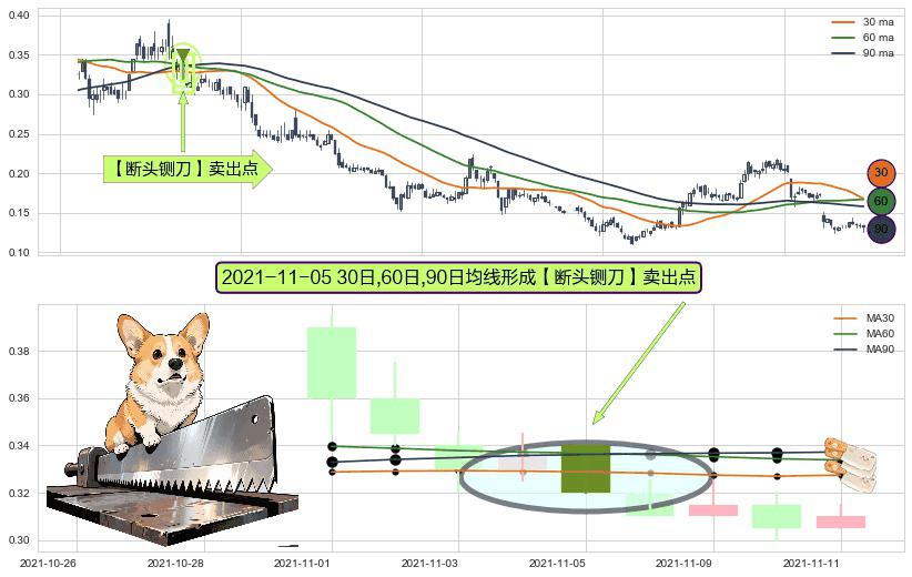 形态多维评估: ⚀ 2021-11-05日显现 30日-60日-90日均线 【断头铡刀】卖出点 看空信号,后市看跌,卖出