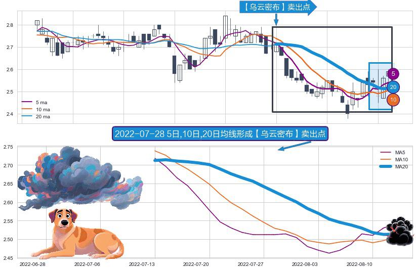 形态多维评估: ⚀ 2022-07-13日-2022-08-12日显现 5日-10日-20日均线 【乌云密布】卖出点 看空信号,后市看跌,卖出