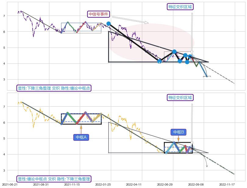 ➣ 【未确认突破,预测即将形成突破】下降三角形整理起点:2022-01-19, 预测突破点:2022-08-17,形态共139交易日