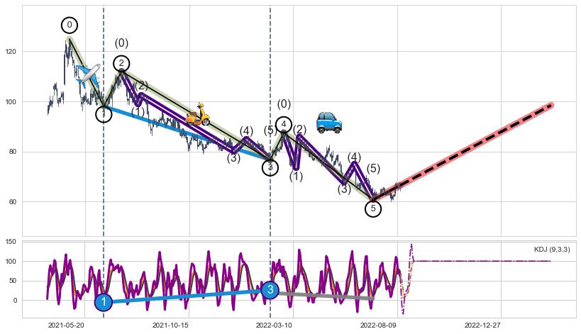 | 5 🅚:【高山滑雪】买入点 ➕ 🌊:波浪理论猜想下跌浪5已形成,猜想后续形成abc反弹上涨(均值回复) ☞ 看多信号 ⇥ 【均线】交织【图形】⇥ 综合量化分数: 52 | > |