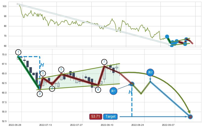 ➣ AI预测: 假定反转启动后, 第❸目标位置(2022-09-28, 60.80)