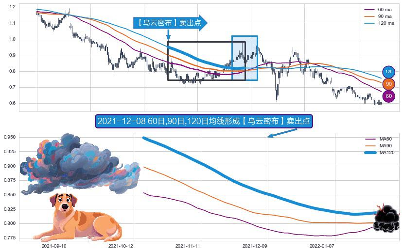 形态多维评估: ⚀ 2021-10-19日-2022-01-27日显现 60日-90日-120日均线 【乌云密布】卖出点 看空信号,后市看跌,卖出