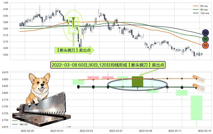 形态多维评估: ⚀ 2022-03-08日显现 60日-90日-120日均线 【断头铡刀】卖出点 看空信号,后市看跌,卖出