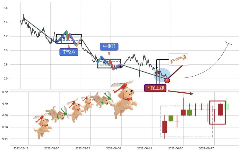 ➣ 【中枢B】:2021-08-20-2021-12-09,中枢由6笔构成,共76交易日, ZG=0.8200, ZD=0.8000