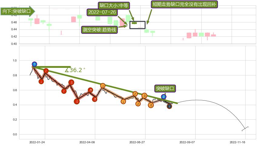 ➢ 【卖1】: 激进型 卖点→(2022-07-06: 0.44000 )形成突破下降三角形整理【整理】形态