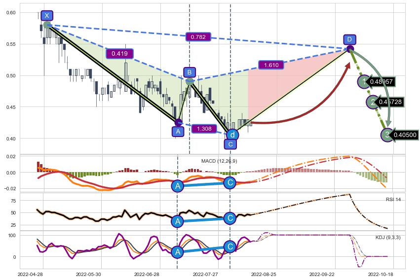 ➣ D点拟合预测价格0.5418,距离最后交易收盘价格0.42500相差 +27.49%
