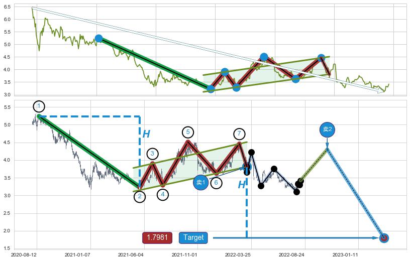 ➣ 最小中继整理跌幅→𝐇: 2.010 (𝐇旗杆的长度:旗杆起点→顶点)