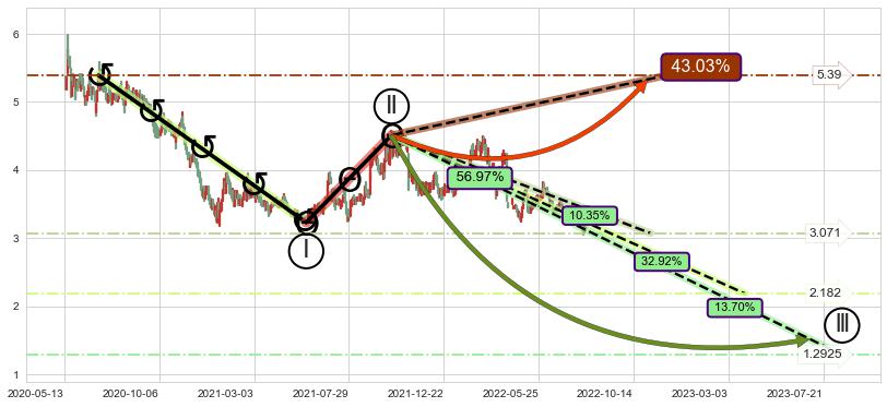 ➣ 循环浪继续向下【平均值】位置(2023-03-29, 2.182),匹配聚类样本比例57.78%, 可能性概率32.92%