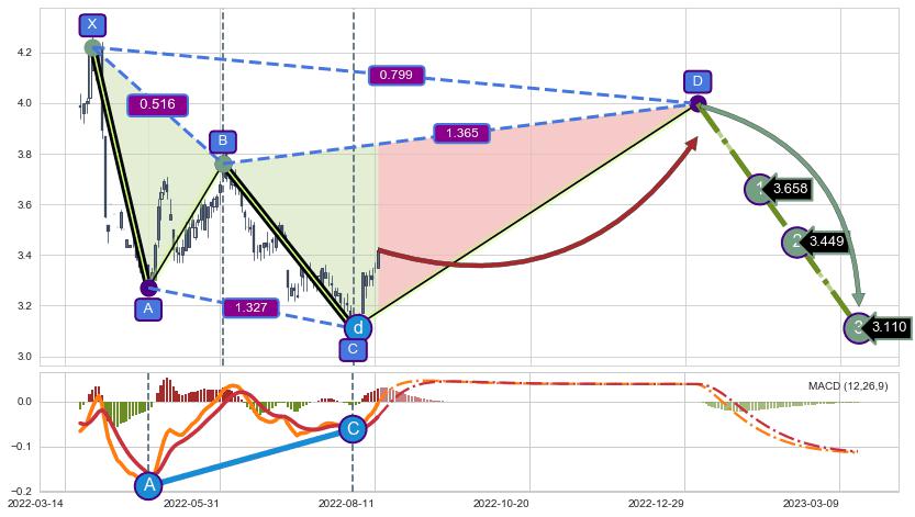 ➣ AI预测: 假定反转启动后, 第❸目标位置(2023-03-17, 3.110)