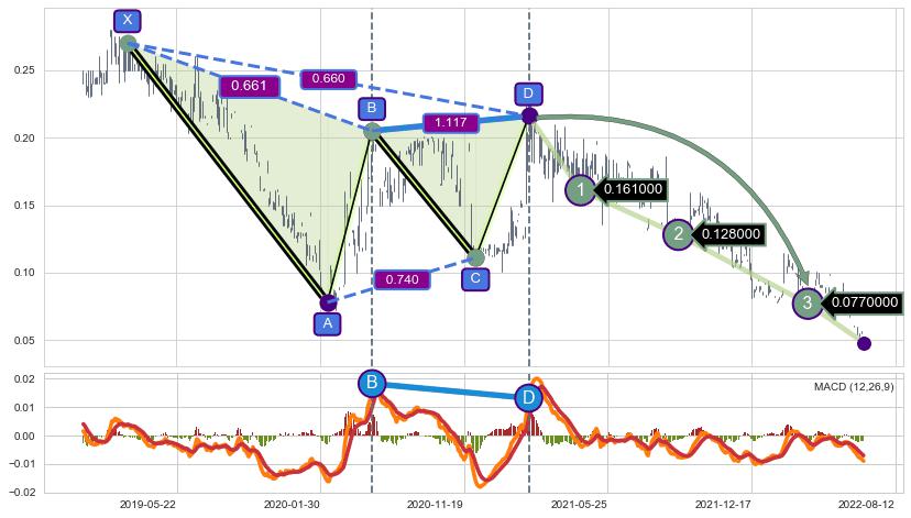 ➢ 谐波价格D点比B点高 ⤴,【MACD】指标D点比B点低 ⤵️