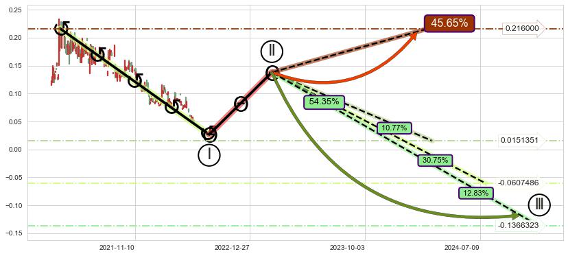 ➣ 循环浪继续向下【平均值】位置(2024-07-23, -0.0607486),匹配聚类样本比例56.57%, 可能性概率30.75%