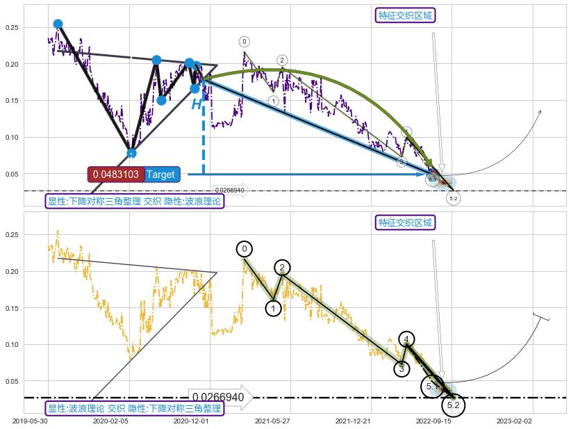 ➣ 5.1: 预测当前第5浪位置(2022-08-12, 0.0480000),仍然有下跌空间