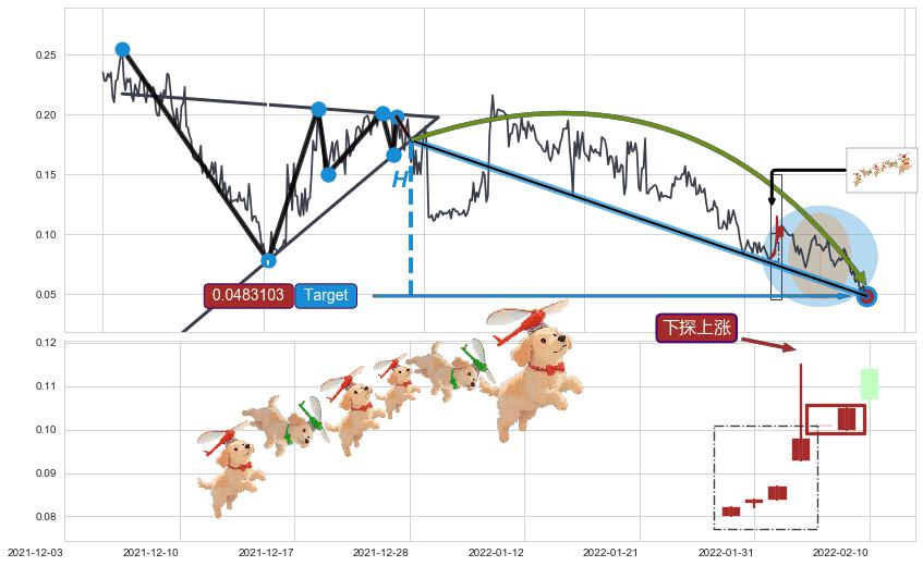 ➣ 【已达成】最小【整理】第一目标价格→(2022-08-12: 0.0483103 ), 后续继续【整理】下跌动力依然存在,下跌空间适中