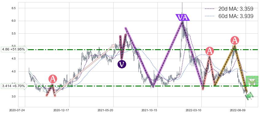 ♞ 20日均线:3.359,60日均线:3.939→ 快线<慢线