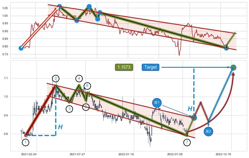 ➢ 2022-03-14到达第❸价格目标位置0.7700