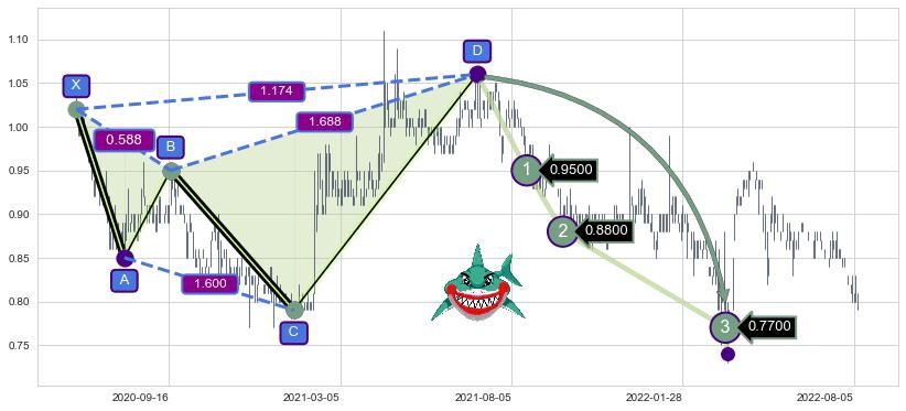 ➣ 已达成看跌【鲨鱼】形态全部的预期目标