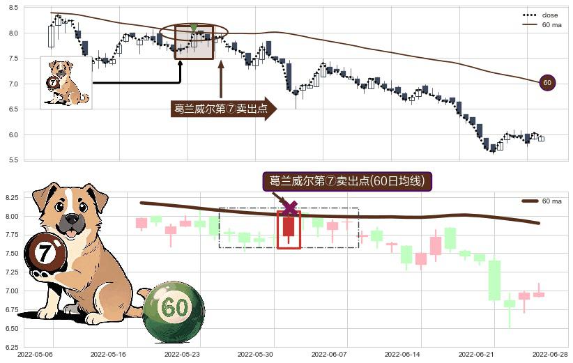 ⚁ 60日均线 第⑦卖出点 属于 均线服从 信号,属于趋势运行的【常态】即信号期望为下降趋势的中继