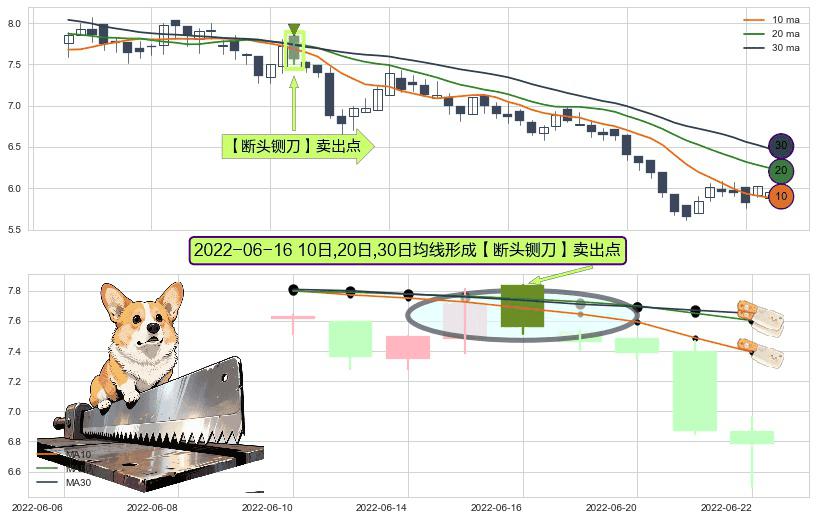 形态多维评估: ⚀ 2022-06-16日显现 10日-20日-30日均线 【断头铡刀】卖出点 看空信号,后市看跌,卖出
