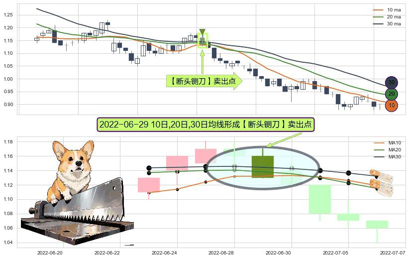 ⚀ 2022-06-29日显现 10日-20日-30日均线 【断头铡刀】卖出点 看空信号,后市看跌,卖出